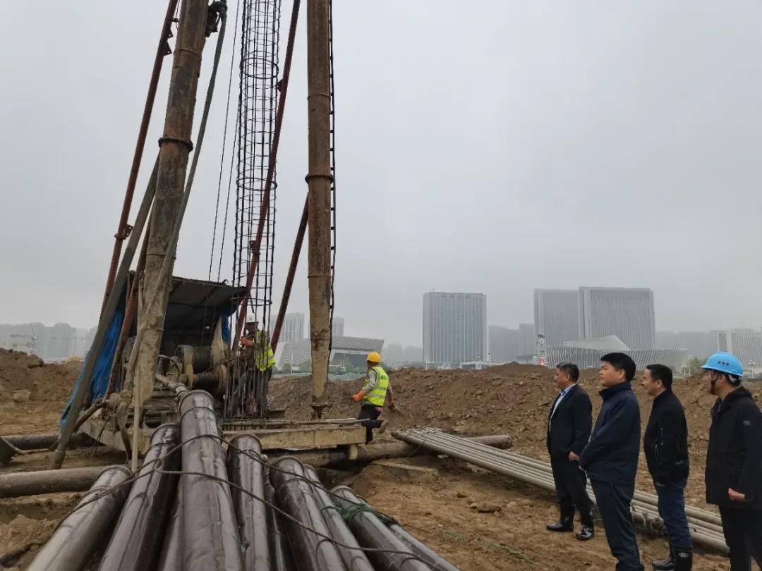 4月25日,市文旅集团党委书记、董事长、总经理朱永兴,党委副书记、董事、副总经理戴志刚带队赴中国水工科技馆试桩工程施工现场检查调研。