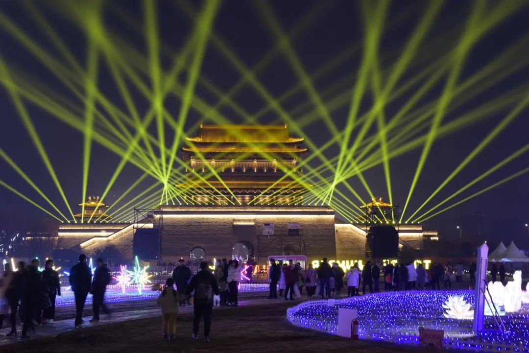 市民游客徜徉在灯阵之中
